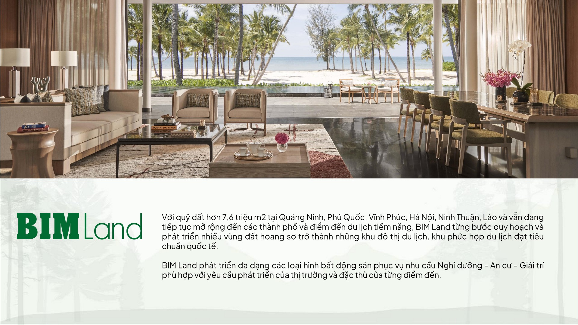 Mỗi dự án của BIM Land không chỉ là một công trình kiến trúc, mà còn là một tuyên ngôn về phong cách sống sang trọng, chan hòa với thiên nhiên và giá trị nghỉ dưỡng đích thực.